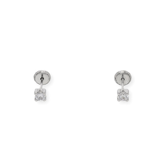Pendientes de oro blanco 2.5 mm de cuatro patillas circonitas