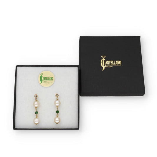 Pendientes Geminus en Oro de 18K con Diamante, Esmeralda central y Perlas Akoya