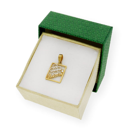 Colgante Mamá Oro 18k Bicolor y Circonita Diseño Rectangular