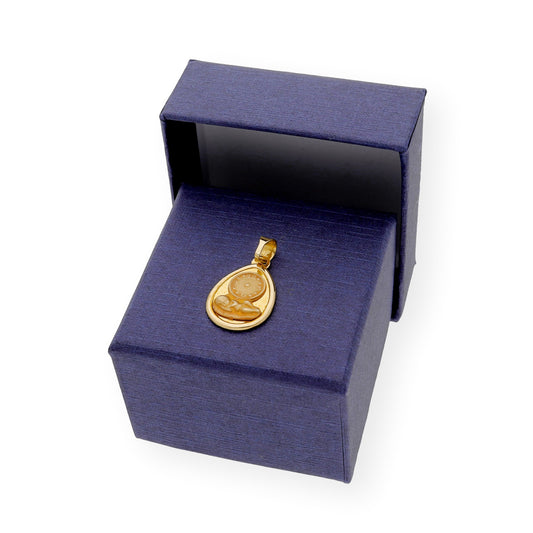 Medalla Virgen Niña María 1ª Comunión oval calada 18k