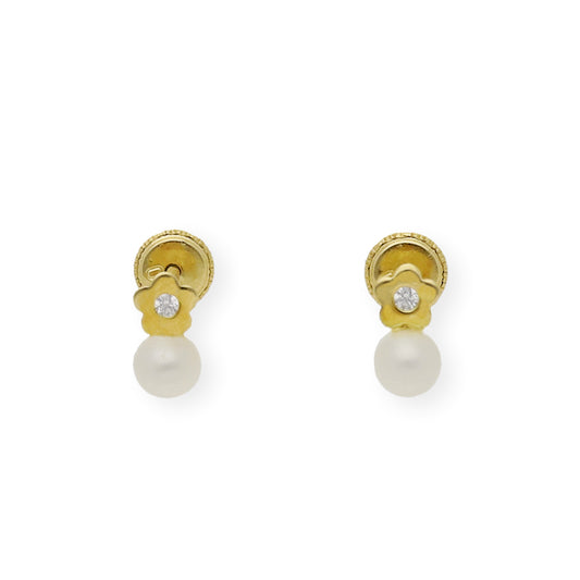 Pendientes Bebé Oro con Perlas y flor circonita 18kPrecio habitual 74,00€Precio habitualPrecio unitario / por-