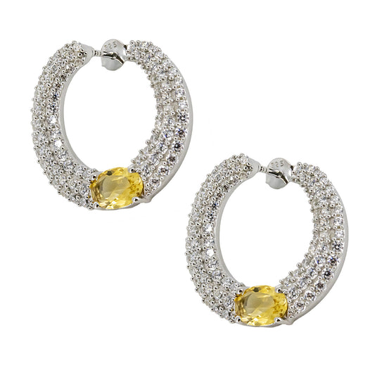 Pendientes Destello en plata de ley 925 Topacio Limón y Orla de Circonitas
