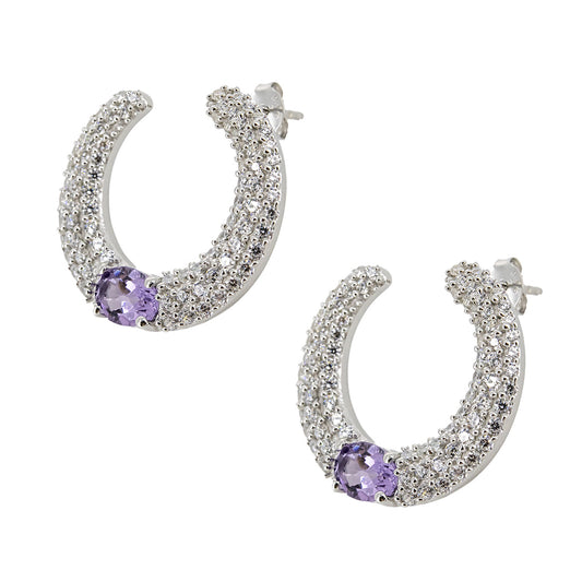 Pendientes Luna Invertida en plata de ley 925 con Amatistas y Circonitas