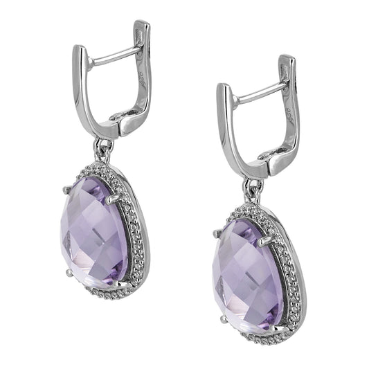 Pendientes Destello en plata de ley 925 Amatista y Orla de Circonitas