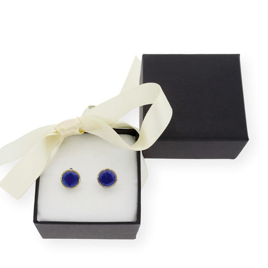 Pendientes Acero con Piedra de Color Azul y Filo en Oro de ley 18k