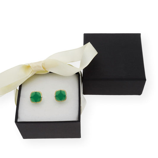 Pendientes de Acero con Piedra de Color Verde y Filo en Oro de ley 18k