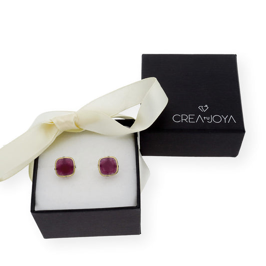 Pendientes en Acero con Piedra de Color Rojo y Filo en Oro de ley 18k