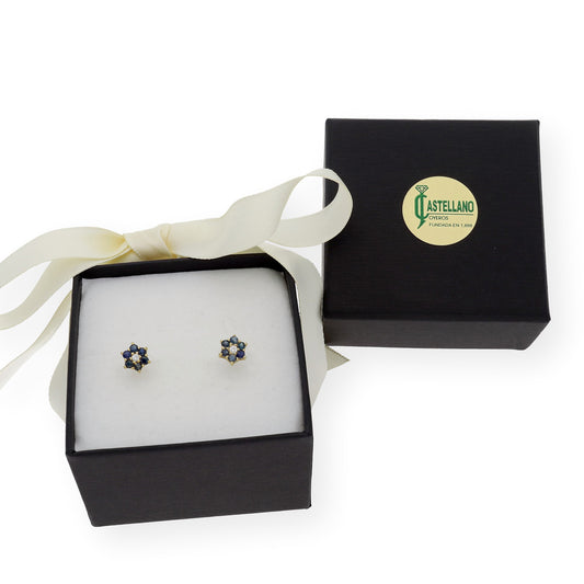 Pendientes de Flor en Oro de Ley 18K con Zafiros y Diamante central