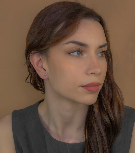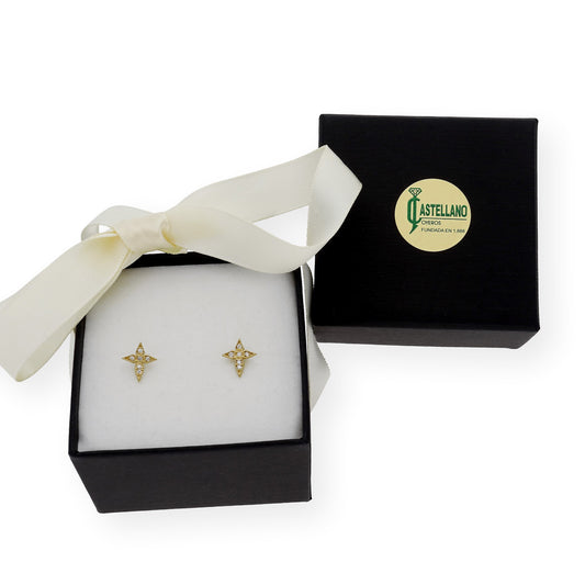 Pendientes de Cruz en Oro de Ley 18K con Diamantes talla brillante