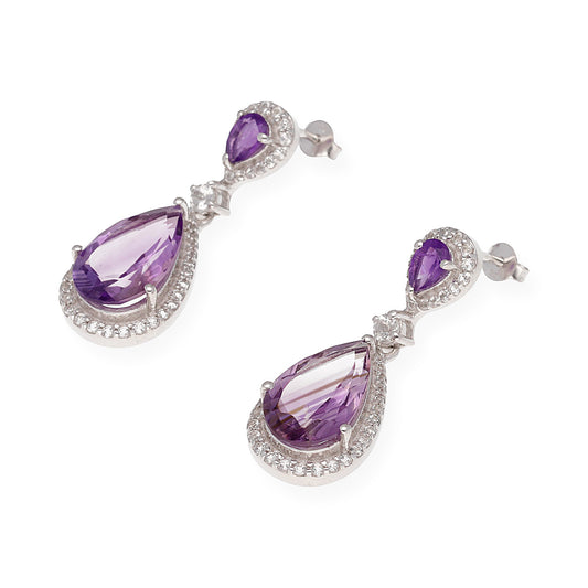 Pendientes Gala en plata de ley 925 con Amatistas y circonitas