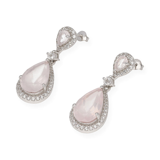 Pendientes Gala en plata de ley 925 con Cuarzos Rosa y circonitas