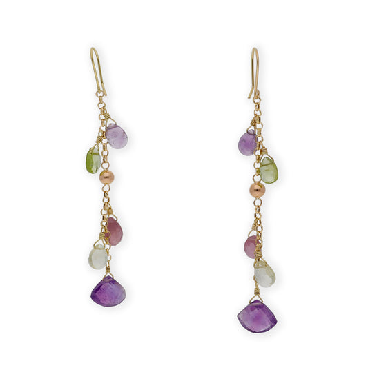 Pendientes Racimo Oro 18 k con Piedras Multicolor