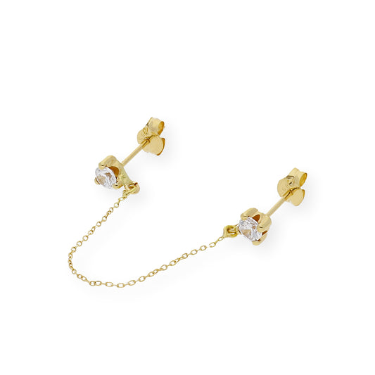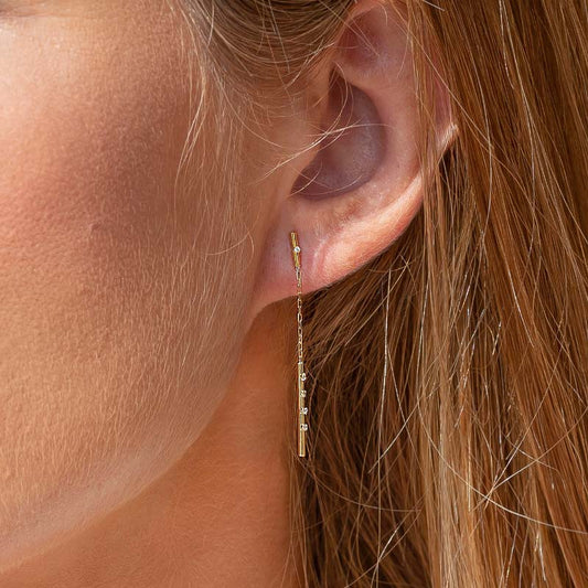 Pendientes largo barras y cadena y circonitas Oro 18k