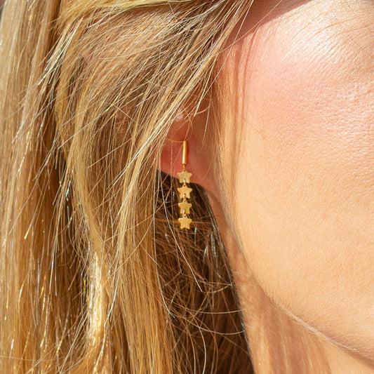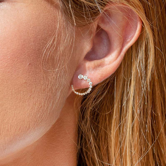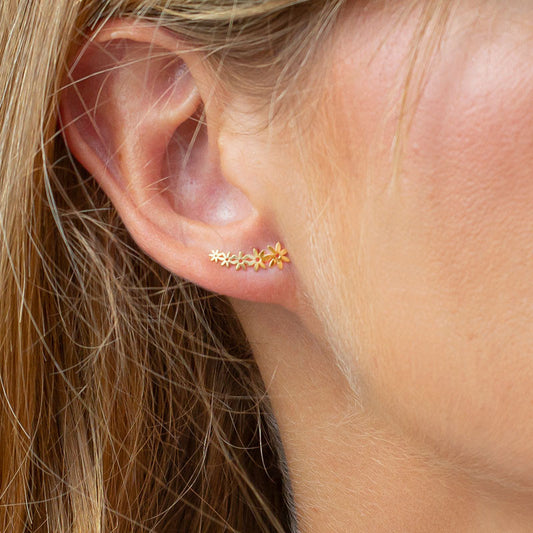 Pendientes Trepador con Diseño de Flores en Oro 18k