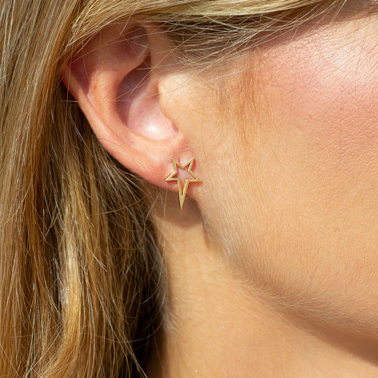 Pendientes I LOVE con Diamante y Rubí en Oro 18k