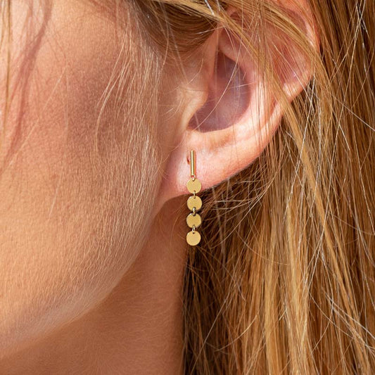Pendientes Largos y Diseño de Cruz en Oro 18k