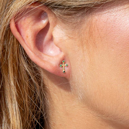 Pendientes cruz con Esmeraldas y Zafiro Oro 18K
