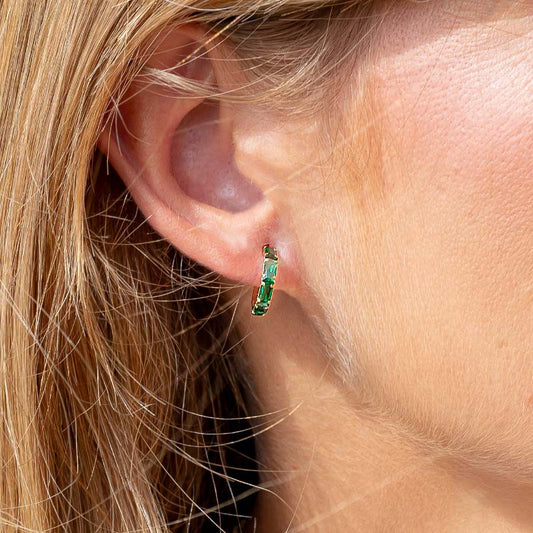 Pendientes Aro en Oro 18k con gemas semipreciosas verdes