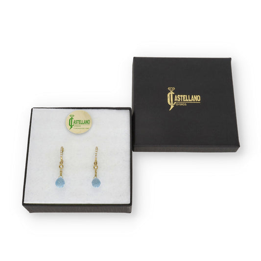 Pendientes Diletto en Oro 18K con Topacio Azul Facetado y Medio Aro de Diamantes