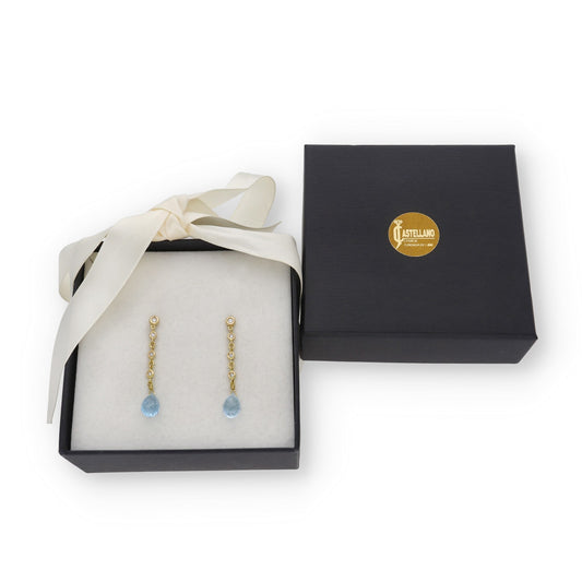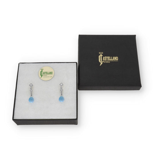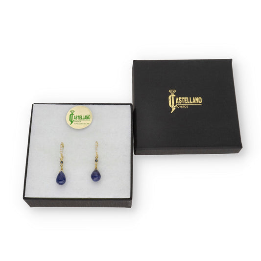 Pendientes Quadama en Oro de Ley 18K con Diamantes y Topacios Azules Facetados