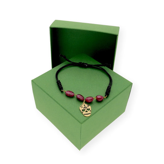 Pulsera Macramé Catrina Mexicana con Rubíes y Oro de Ley 18k