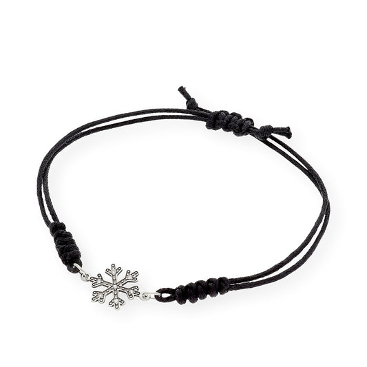 Pulsera Macramé de Oro Blanco de Ley con Diamantes y Diseño de Copo de Nieve