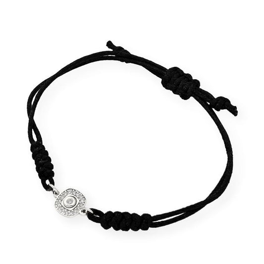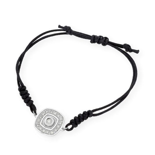 Pulsera Macramé de Oro Blanco de Ley con Diamantes y Diseño Cuadrado