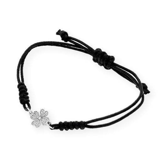 Pulsera Macramé de Oro Blanco de Ley con Diamantes y Diseño de Trébol