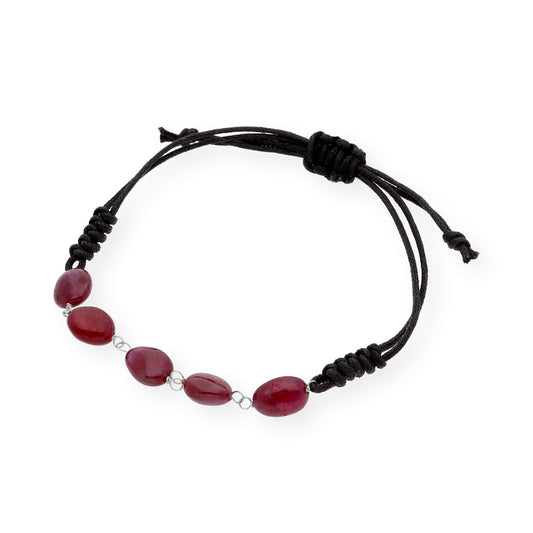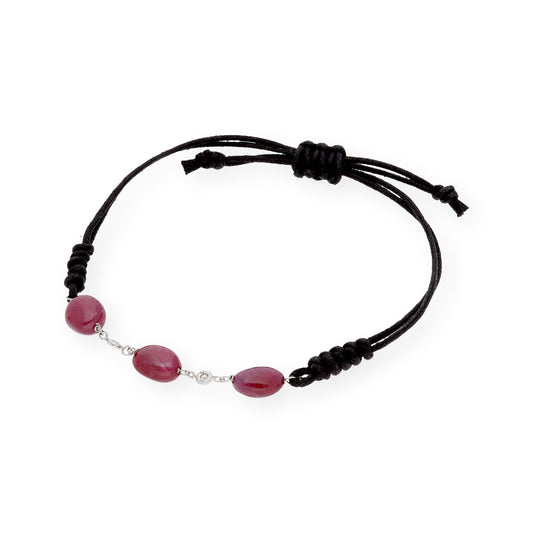 Pulsera Macramé de Oro Blanco de Ley con Rubíes