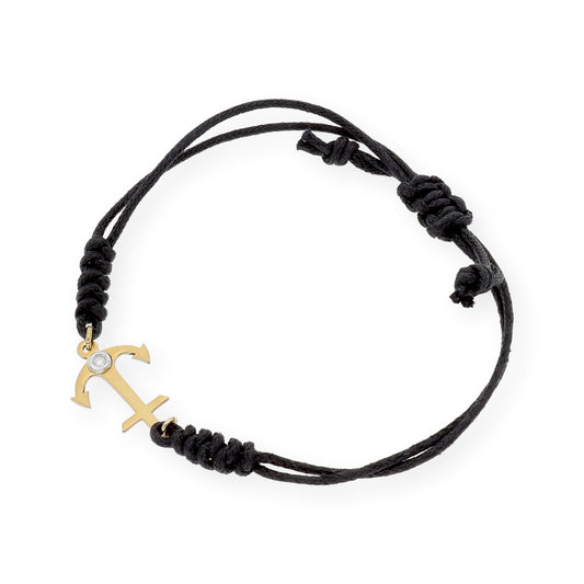 Pulsera Macramé Ancla en Oro de Ley 18k y Diamante