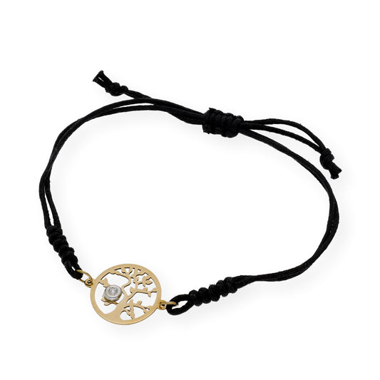Pulsera Macramé Árbol de la Vida en Oro de Ley 18k y Diamante