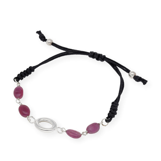 Pulsera Macramé con Rubíes en Plata de Ley 925