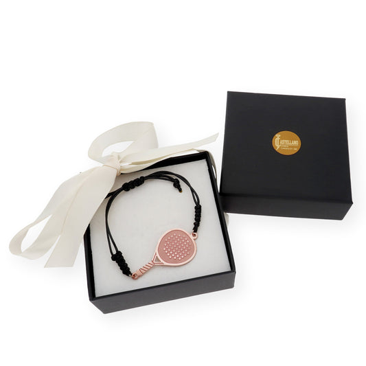 Pulsera Macramé Pala de Pádel en Plata de Ley 925 Bañada en Oro Rosa de 18K
