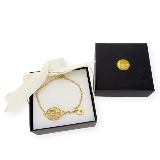 Pulsera Raqueta de Tenis en Plata de Ley 925 Bañada en Oro de 18K