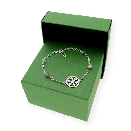 Pulsera de Plata con Amatistas y Diseño Copo de Nieve