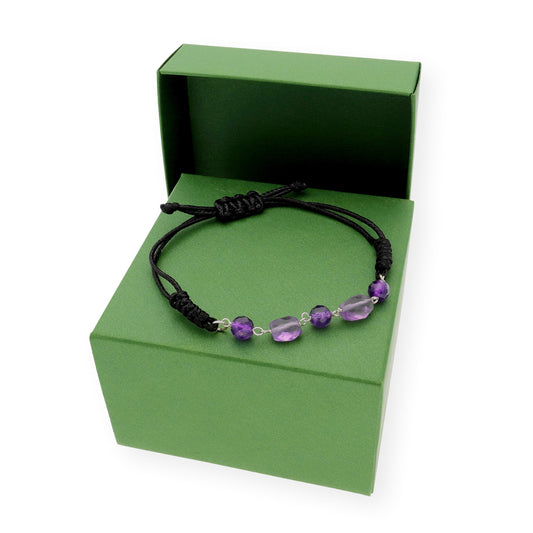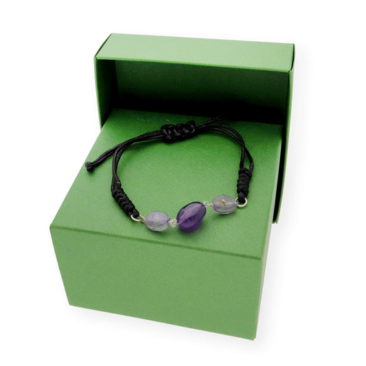 Pulsera Macramé en Plata de Ley con tres Amatistas