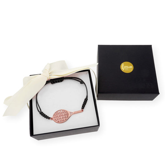 Pulsera Macramé Raqueta de Tenis en Plata de Ley 925 Bañada en Oro Rosa de 18K