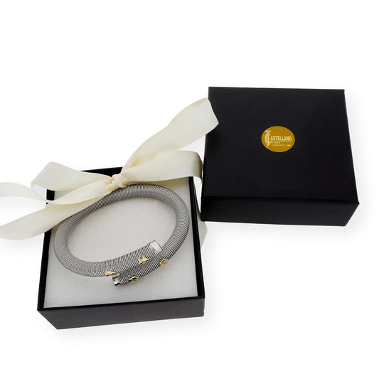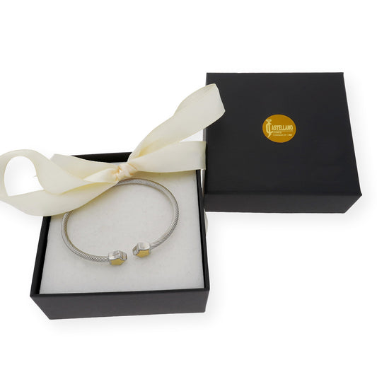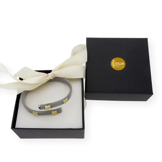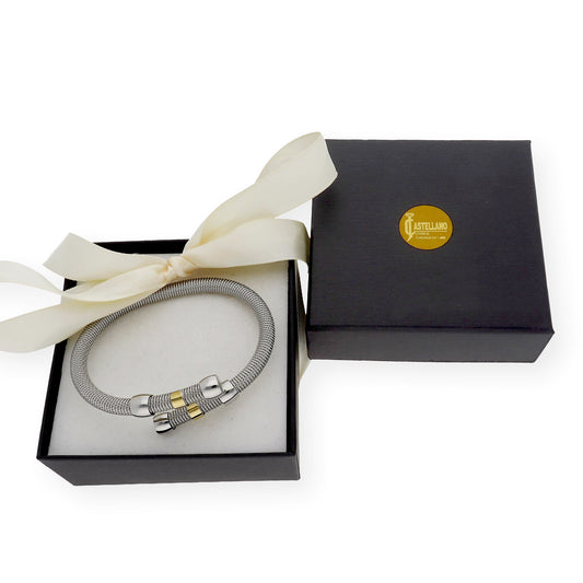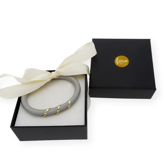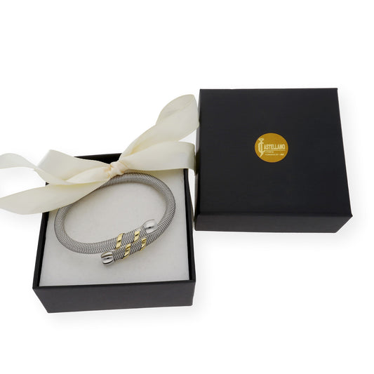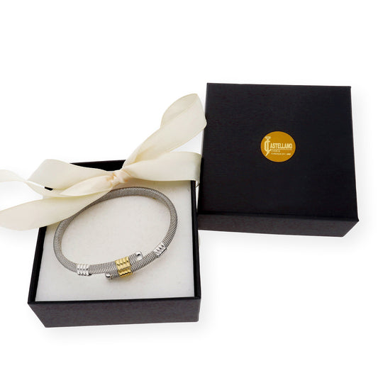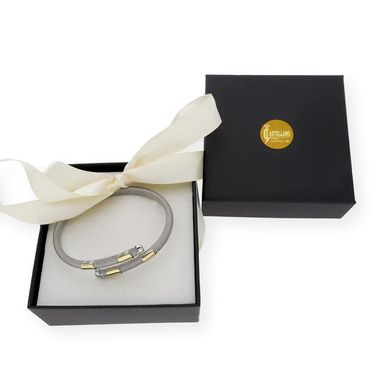Pulsera Rígida en Acero y Espiral Entrelazada en Oro de ley 18k