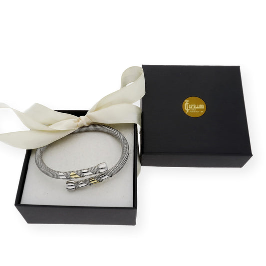 Pulsera Rígida en Acero en Espiral y Oro de ley 18k