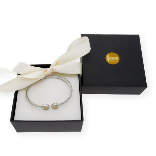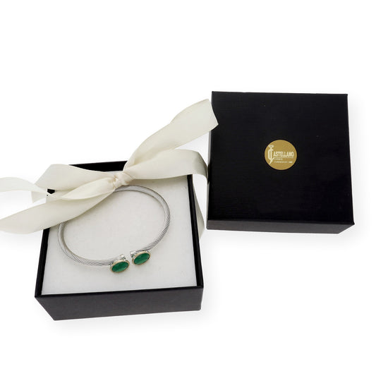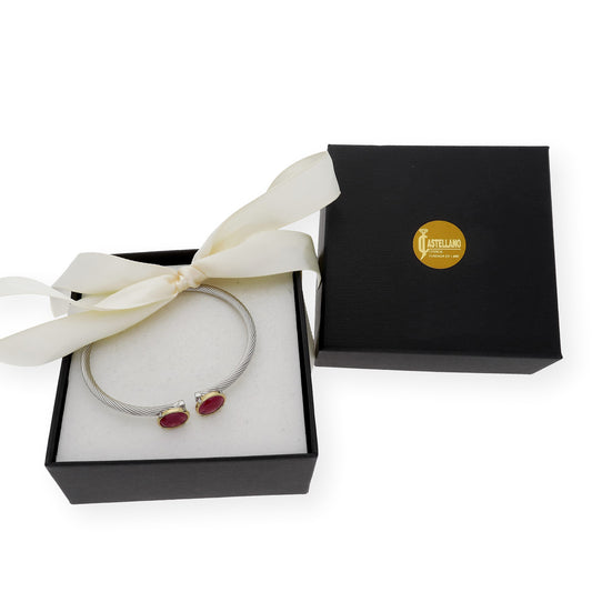 Pulsera Rígida en Acero con Piedra de Color y Filo en Oro de ley 18k