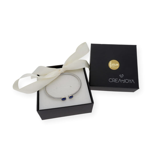 Pulsera Rígida en Acero con Piedra Color Azul con Filo en Oro de ley 18k