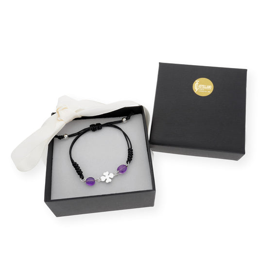 Pulsera plata de ley 925 macramé trébol con Amatista