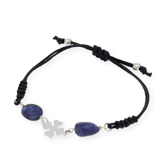 Pulsera plata de ley 925 macramé trébol con Zafiros