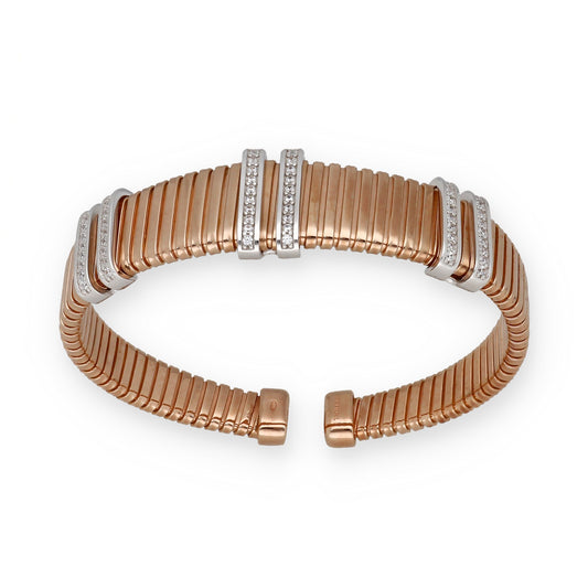 Brazalete Tubo de Gas Plata 925 con Baño de Oro Rosa 18K y Circonitas