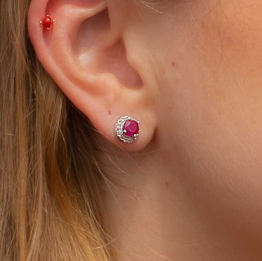Pendientes de Botón en Oro 18K con Rubí 6x4mm