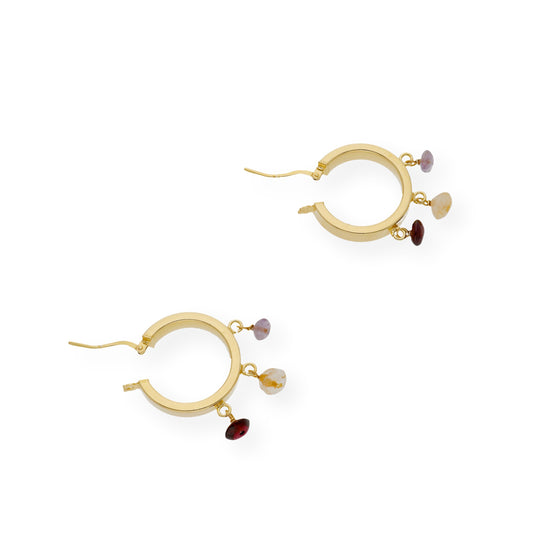 Pendientes de Aro Grueso en Plata de Ley con Baño de oro y Piedras Color