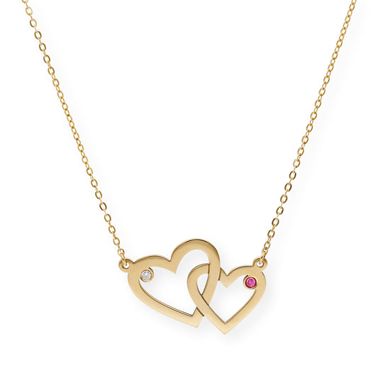 Collar con Colgante Cuore en Oro de 18K con Diamante y Corazón de Rubí