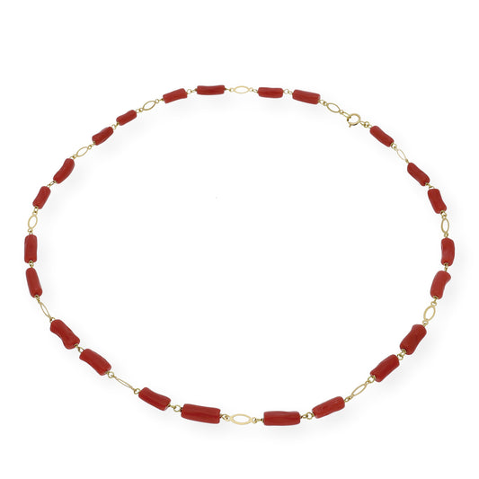 Collar de Oro Amarillo 18K con eslabones oval y Corales Naturales