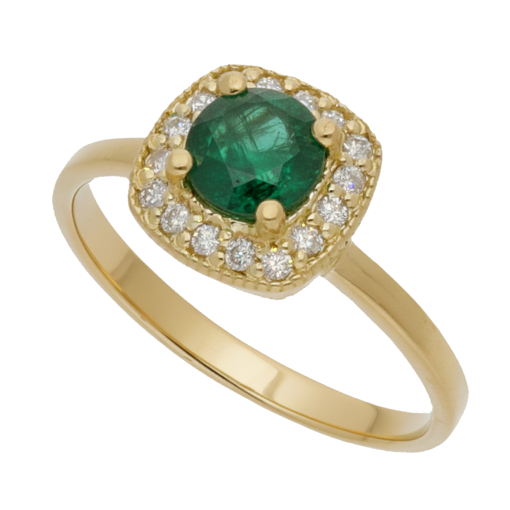 Anillo Isabella Oro 18K con Esmeralda y Orla de Diamantes