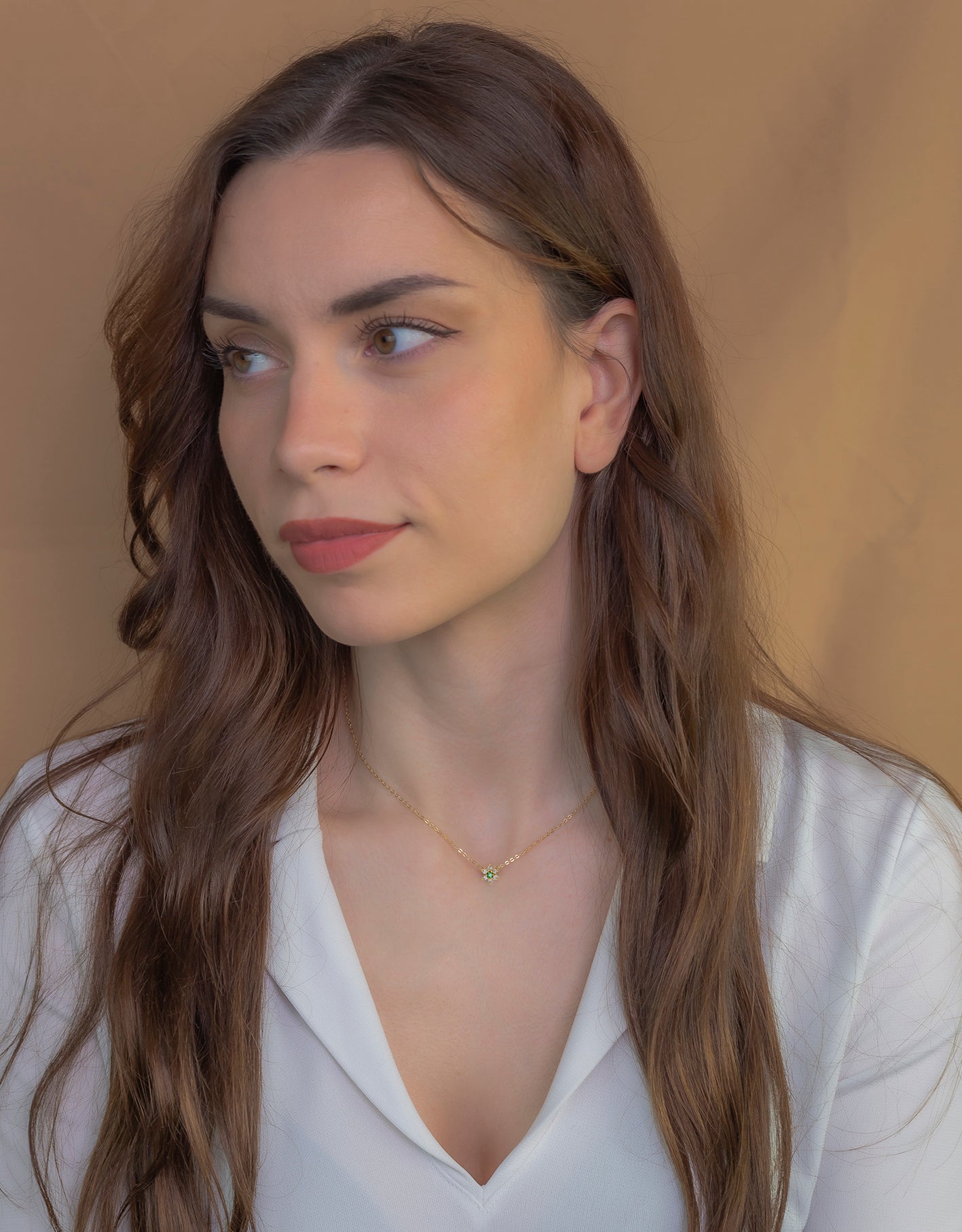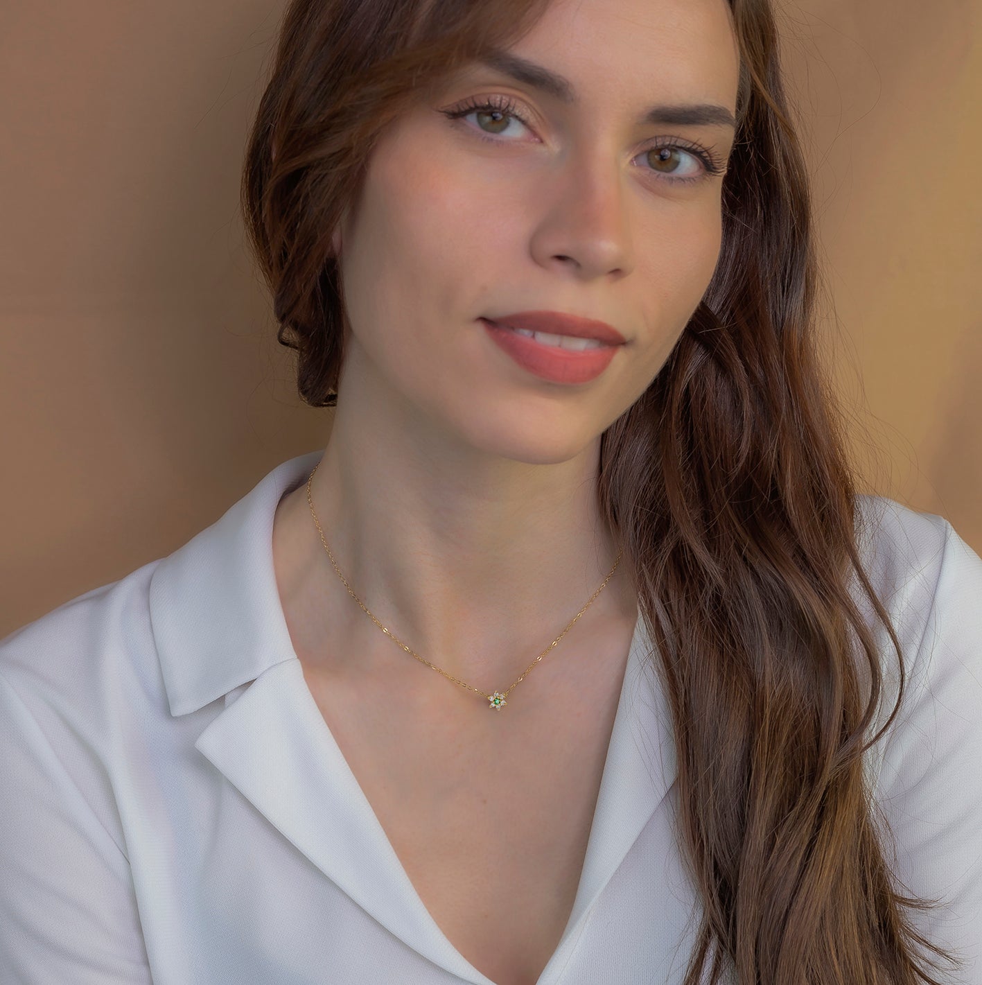 Collar Aster de Oro Amarillo 18k con Diamantes y Esmeralda